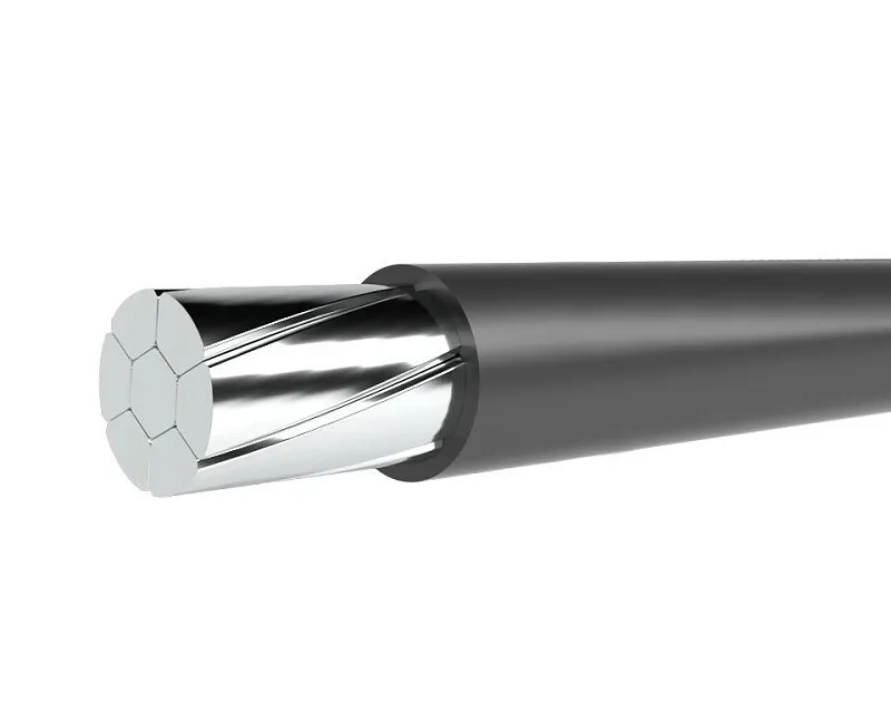 Представляет собой круглые алюминиевые жилы, скрученные вокруг одинарной несущей стальной жилы сечением, в изоляции из светоустойчивого сшитого полиэтилена и внешней оболочке черного цвета.
