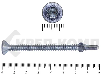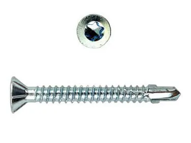 Конструкционные (Флюгельные) саморезы (дерево-металл), применяются для крепления деревянных досок к металлическим конструкциям. На конце самореза, чуть выше сверла, есть ушки, которые при прохождения дерева, рассверливают его, для тог, что бы саморез не касался стенок доски. Это делает закручивание самореза более простым, и надежнее прижимает доску к металлическому основанию. Кода сверло самореза достигает металла, ушки обламываются, и далее саморез легко вкручивается в металл, прижимая доску.